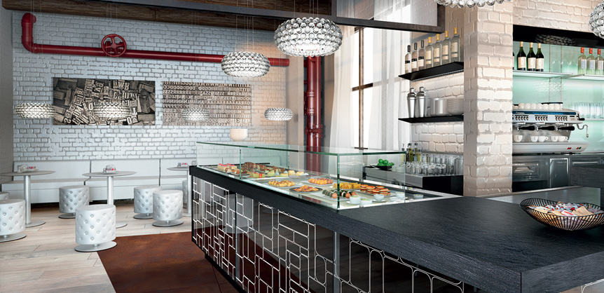 Zahvaljujući RGB LED filterima kroz gravure, stvaraju se upečatljivi svjetlosni efekti. Ovaj šank s pozadinskim osvjetljenjem sadrži dvije ploče: pozadina je crna, a prednja ploča je izrađena od pleksiglasa s ugraviranim geometrijskim oblicima. Dostupna su tri uzorka prednjeg panela od pleksiglasa: fine prugice (pomoću kojih panel izgleda potpuno osvijetljen), pukotine ili u obliku opeke.